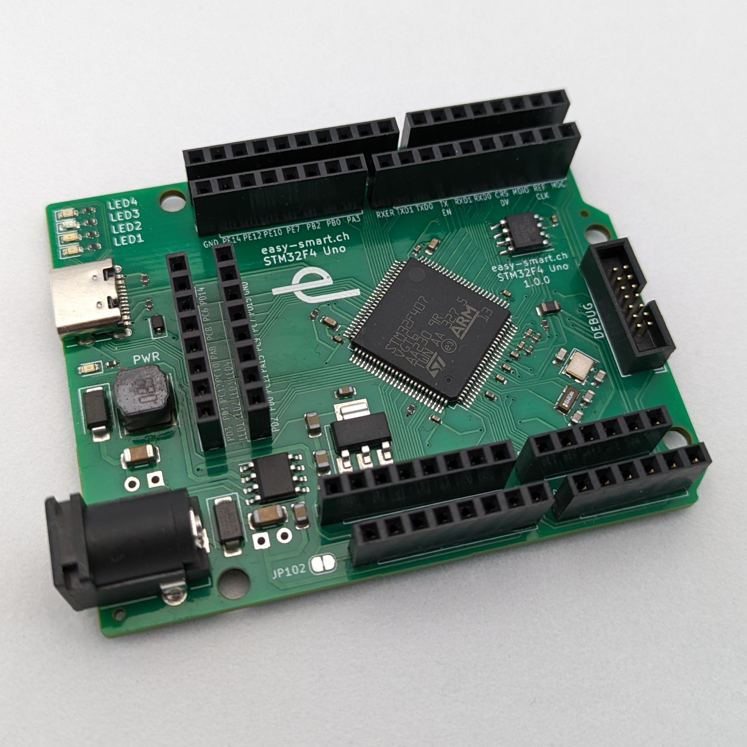 Für Debugging und Anzeige befinden sich 4 farbige LED auf dem Board.